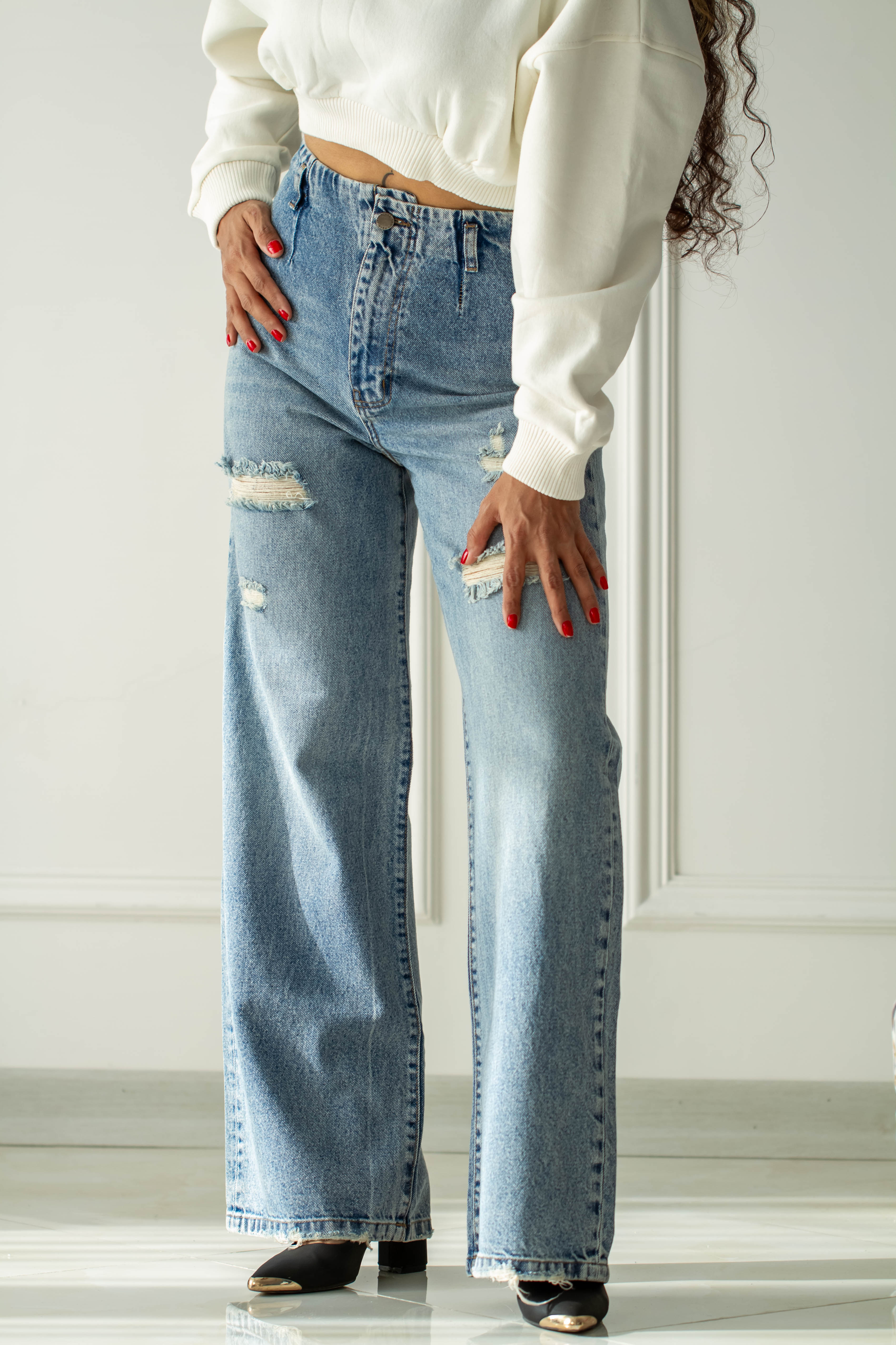 شلوار جین زاپدار واید لگ